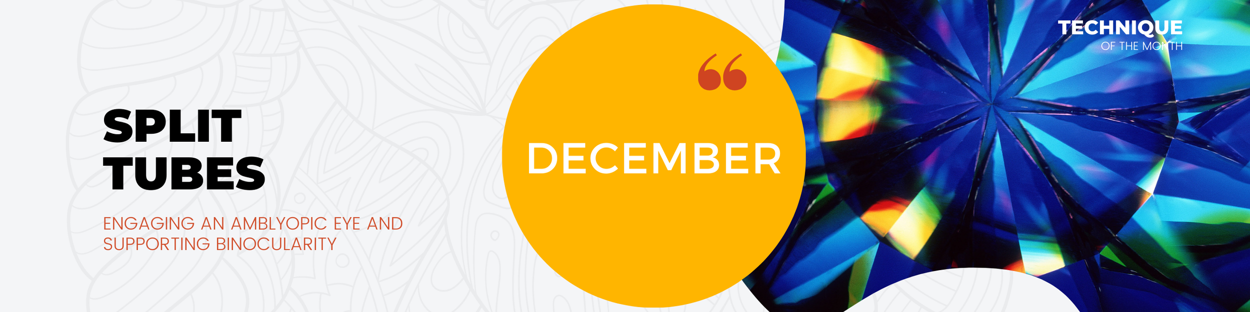 This month’s technique provides just that. An immediate feedback to the eye and to the brain is ensured through the use of Collimator (narrow-view) Tubes. The tool simplifies the environment in which the eyes and the brain function, by temporarily eliminating most of the peripheral vision field. The training protocol builds on the Tubes Targeting lesson and does include some of the elements of the technique taught there, so that the Split Tubes lesson is able to stand on its own.