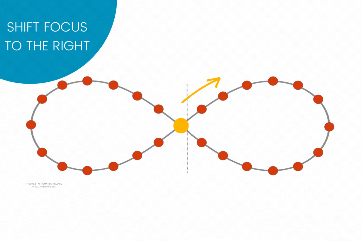 Practice with both eyes together to re-establish a correct eye-head movement coordination. Practice with mono shields for astigmatism release.