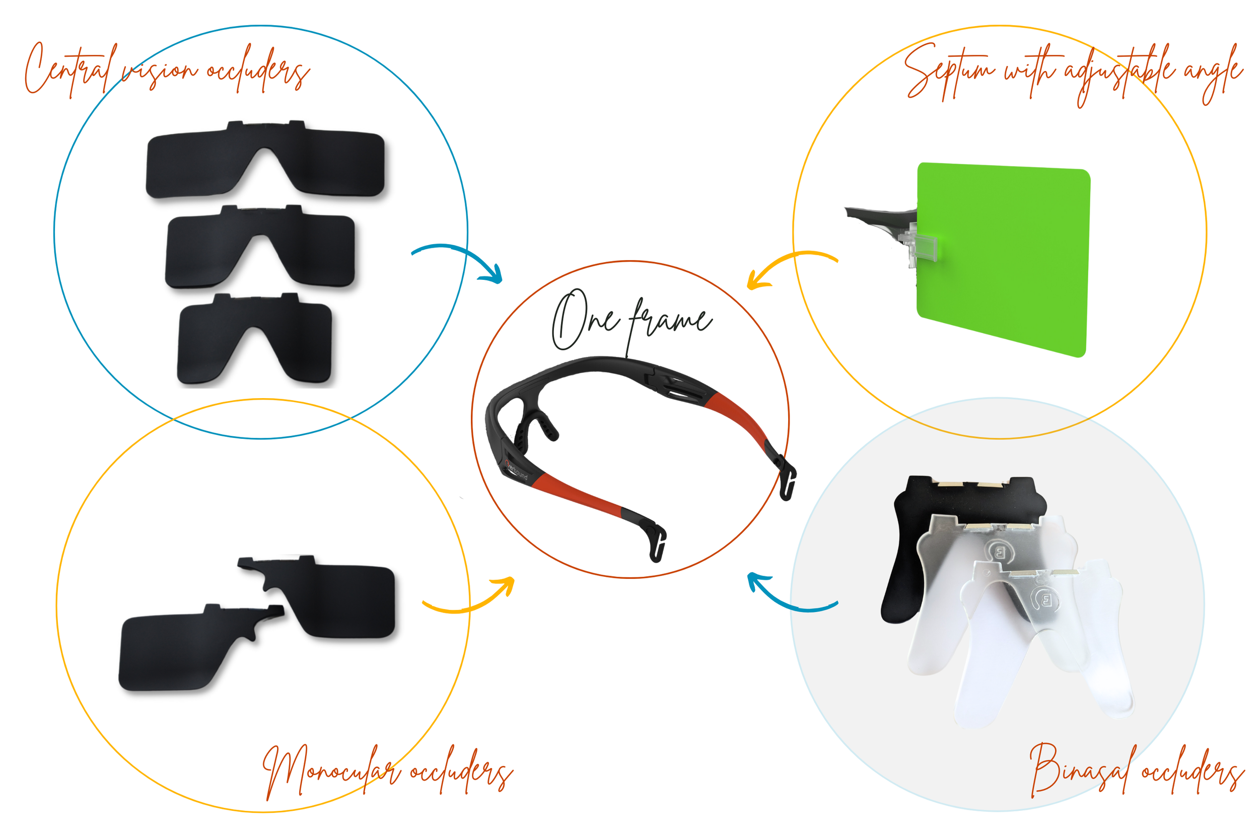 This selection of Overbound Occluders has been chosen for your vision training by Patti Andrich and the therapists at the Vision Development Team. We trust these tools will greatly enhance your vision improvement practice and help you reach your eyesight related dreams. Learn about the Overbound Occlusion System here or scroll down to shop.